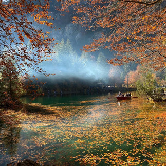 A visit to Blausee is a fairly relaxed and quiet affair. The lake itself is very small and has a walking path around it that can be completed in about 20 minutes, assuming one does not stop to take photos every few feet like I did. There are other little hiking trails, a playground for the kids, a grill if you want to bring your own food, a cafe, a restaurant, and ample benches to soak in the sun and admire the view. There is also a little 15 minute boat ride included with your entry ticket. The boat has a glass bottom and takes you around the lake, by the bridge and the statue of the maiden.